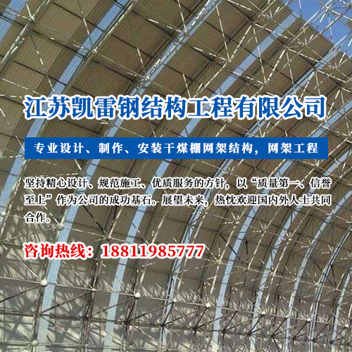江蘇凱雷鋼結(jié)構(gòu)工程有限公司是專(zhuān)業(yè)設(shè)計(jì)、制作、安裝干煤棚網(wǎng)架結(jié)構(gòu),煤場(chǎng)封閉料倉(cāng)網(wǎng)架,及其配件的企業(yè)... 查看詳情